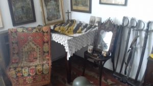 A legrégebbi érték egy obsitlevél, de van itt 110 éves pásztortáska, régi bölcső, kard 1850-ből, egy komplett makett-szekérgyűjtemény, fegyveres ládák, de a legbüszkébb a bosnyák katonai imaszőnyegre, melynek hátoldalán egy címer is látható Akárhová néz az ember, valami magyar kötődésű különlegességet talál. Szőnyeg Artúr úgy véli, ezeknek a tárgyaknak azért van nagy jelentőségük, mert ezekből több nem készül már. Szerinte az ereklyék tanítanak. Rávilágítanak a múltunkra, kultúránk, hagyományaink élettelen őrzői, a magyar ember kreativitásának csendes bizonyítékai. A tájházi kiállítást bárki meglátogathatja időpontegyeztetést követően (Facebook). Érdemes, hiszen híre messzire eljutott. Még egy budapesti forgatócsoport is használta díszletként a tájház konyharészletét. A film Mindszenty József bíboros életét dolgozta fel. Szőnyeg Artúr arra is rávilágított, hogy tájháza nem múzeum, itt a látható tárgyakat bárki a kezében tarthatja, megtapasztalhatja a fegyverek súlyát, megfoghatja a szekereket, bekukkanthat a ládákba, és elmerülhet a régmúltban. A szervezett csoportokat maga a gyűjtő kalauzolja a régmúlt tárgyai közt. (Komáromi Újság / hd)